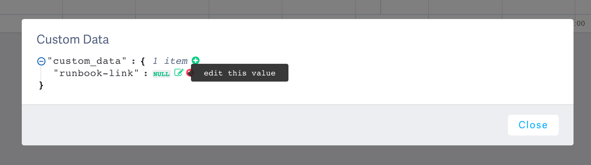 You can add new fields to the custom-data object displayed in the dialog, or edit existing fields. You can also remove fields entirely.
