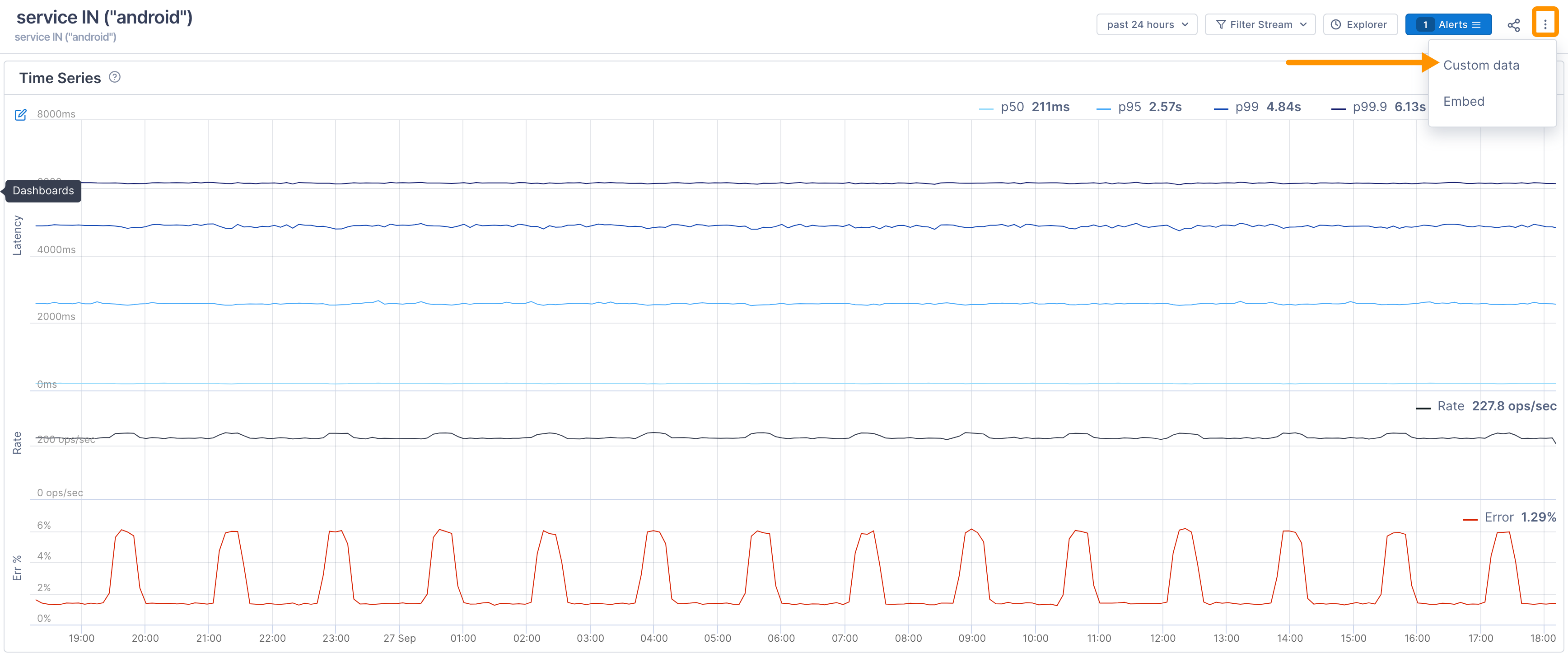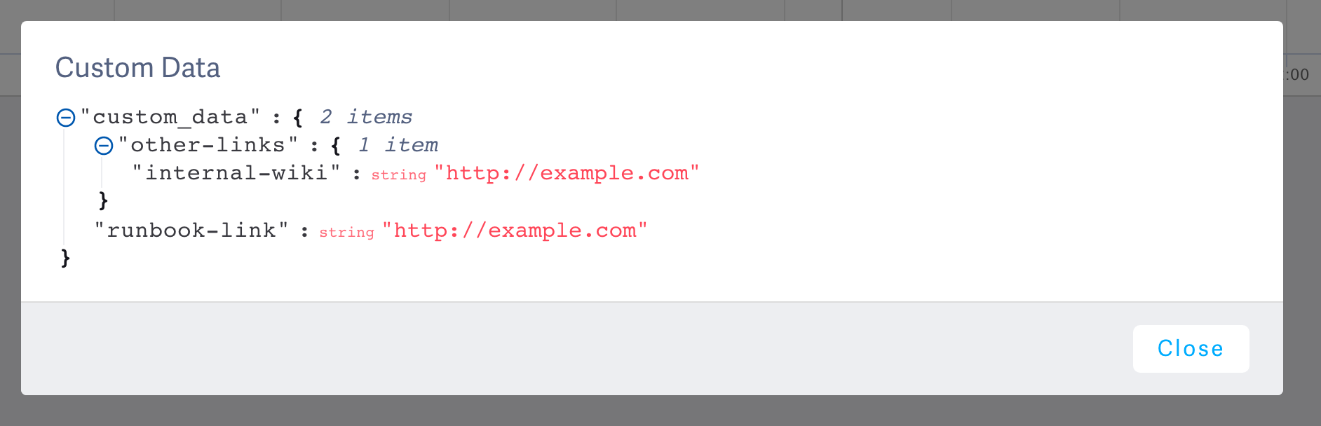 You can attach custom data to webhook notification destinations on an alert. Custom data can be useful for making connections between Cloud Observability data and other systems, or including contextual information about a Stream.